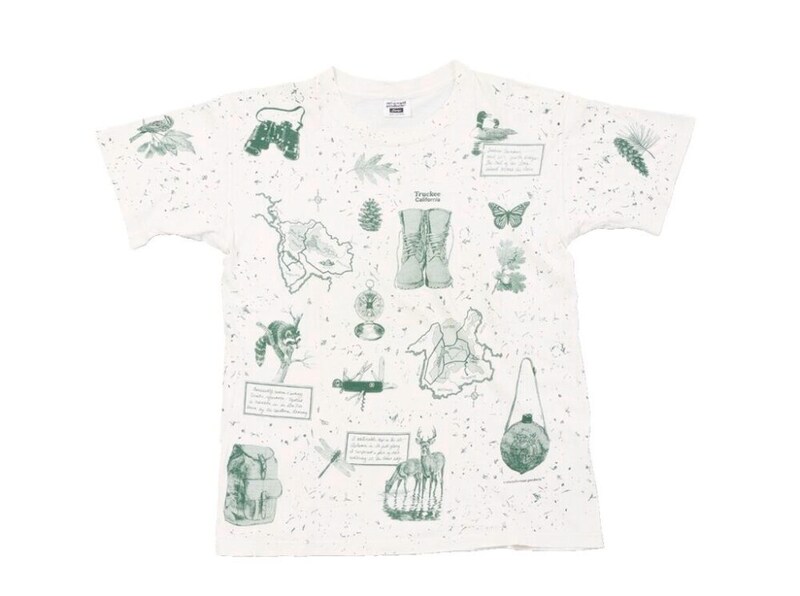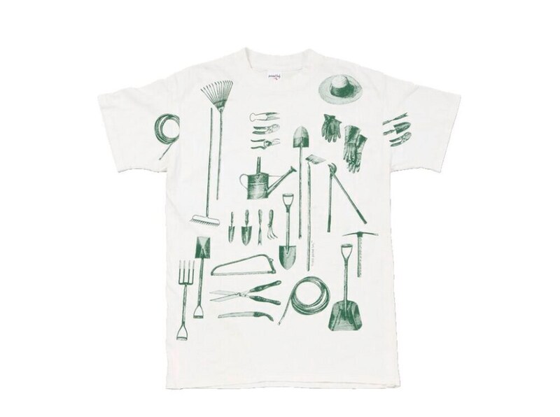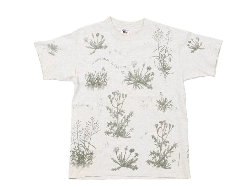 Tシャツプリントデザイン会社「painted lady」が、1994年に道具や生物や植物などをテーマに様々な種類で紹介される総柄プリントをメインに展開する〈el・e・vant products 〉。配置やリアルタッチなイラストがアートといえる秀逸なデザインは古着店で注目されてきている。