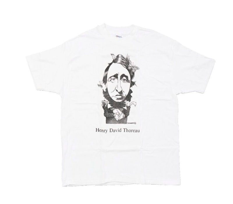 作家や画家に音楽家などをイラストレーターのスティーブ・クラッグがユニークなタッチで描いた偉人がプリントされるシリーズ。’80s後期から’90s初期に作られた。マグや腕時計なども存在し雑貨店などで売られていたのか、Tシャツも本の様に見える箱に入った状態で売られていた