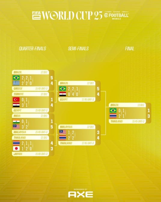 勝ち点制で行われたモバイル部門の決勝戦。1戦目は前半にタイが強烈なミドルシュートで先制すると、後半にも追加点を決めてブラジルを圧倒。2戦目はブラジルが先制して意地を見せるも、タイがすぐに追いつき、そのまま引き分けで試合が終了。白熱した戦いを制したタイが初優勝を飾りました。