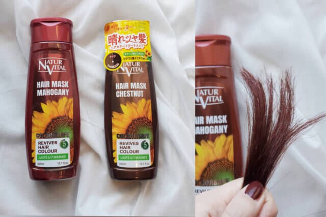 ▲ナチュラルバイタル「カラーセーフ ヘアマスクS」 全4色(写真はワインレッド、ナッツ) 300ml 各¥1,980(税込)