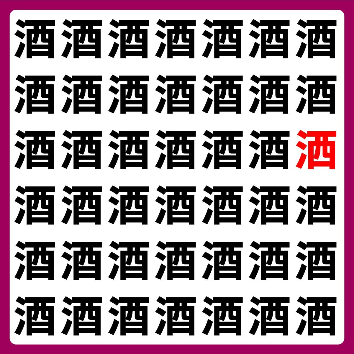 違う漢字は、上から3番目の列、右から1番目の文字でした!