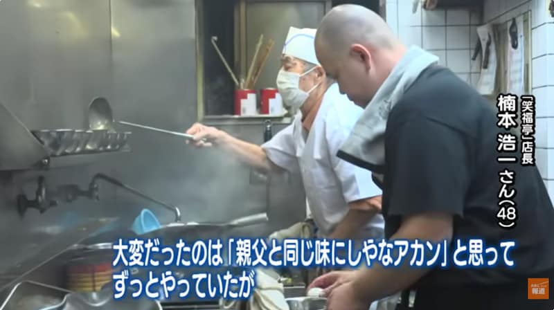 お店を切り盛りするのは、創業者の楠本敏男さん(81)と貞子さん(71)夫婦。そして、敏男から店を受け継いで店長を務める長男の浩一(48)さん、その長男で孫の龍之介さん(22)の4人。親子三代が厨房で忙しく働いています。