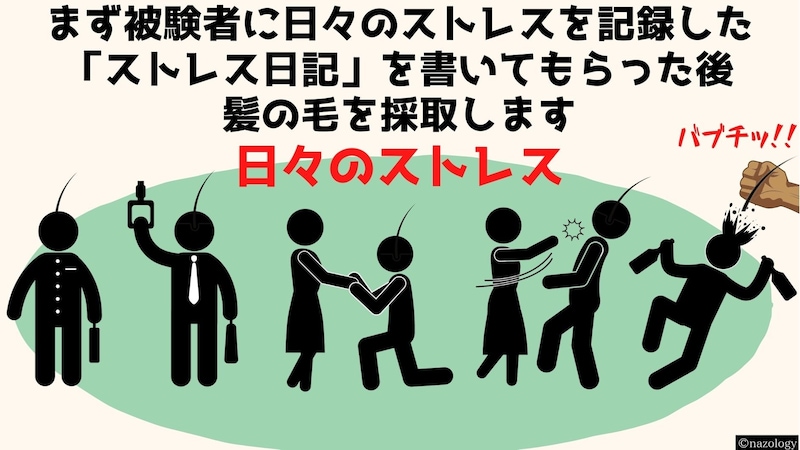 ストレスと髪の色の変化を調べるにあたり研究者たちはまず、複数のボランティアたちに日々のストレスレベルを記録した「ストレス日記」を、作成してもらいました。