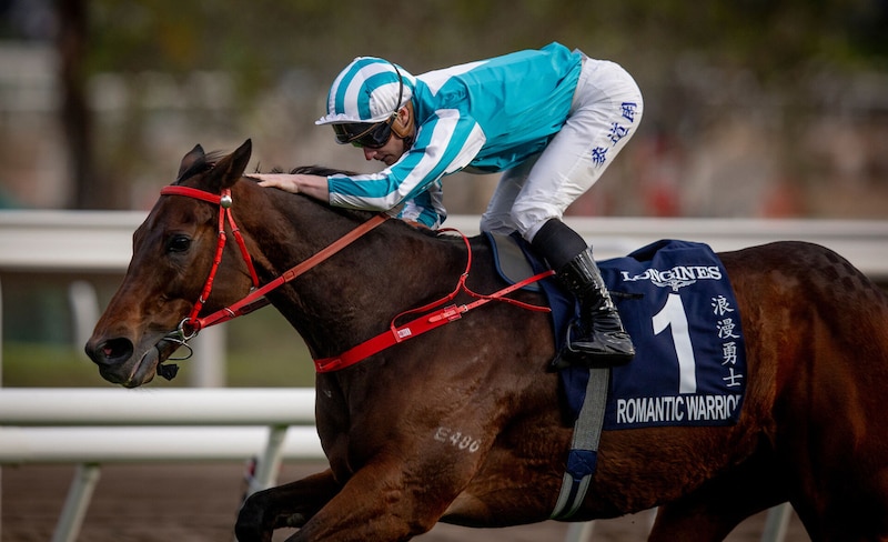 現地時間12月14日、香港・シャティン競馬場で行われた第8R・香港カップ(G1・3歳上・芝2000m・1着賞金2240万香港ドル=約4億4000万円)でJ.マクドナルド騎乗、ロマンチックウォリアー(せん7・C.シャム)が快勝した。2着に日本馬のベラジオオペラ(牡5・栗東・上村洋行)、3着にキジサナ(牝5・F.グラファール)が入った。勝ちタイムは2:02.9(良)。