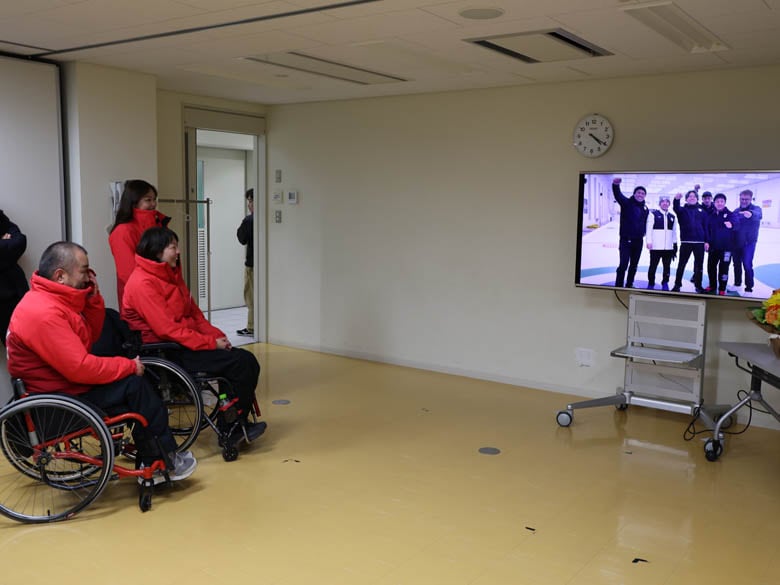 ライバルであり、車いすカーリング仲間の柏原が寄せ書き入り日の丸を贈呈したその後、“チーム中島”に向けた応援動画がモニターに映し出され、15組約45人のメッセージが流れると、「世界選手権で金メダルを獲っても泣かなかった」という中島が思わず涙。それぞれの人たちとの思い出が呼び起こされ、熱いものがこみ上げたと言い「こんなはずじゃなかったのに。感動してしまった」とまた涙。小川の頬にも大粒の涙が伝い、「いい仲間がいてカーリングを続けてきてよかった」と言葉を詰まらせながら感謝を述べた。