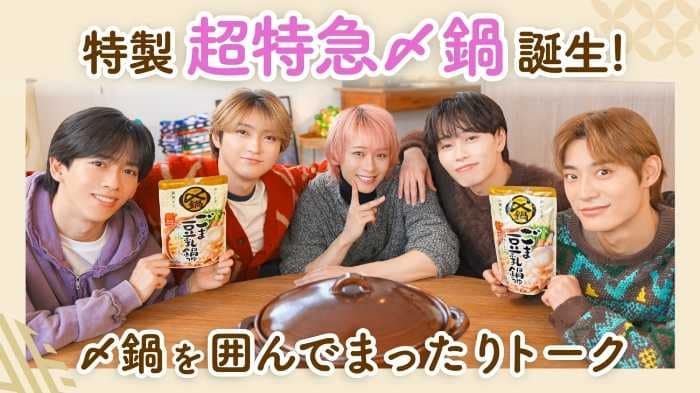 YouTubeプレミア公開動画「結成14周年直前SP!超特急と〆鍋トーク」では、超特急9人が共同生活を送る“お家”を舞台に、〆鍋ごま豆乳鍋つゆを囲んだ鍋パーティーを開催。