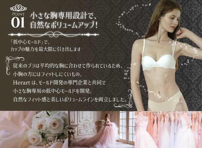 HerartはCカップまでに特化したブランド。最新作ModalBalconetteブラは、一般的なブラの縮小ではなく、小胸専用の低中心モールドを採用しています。