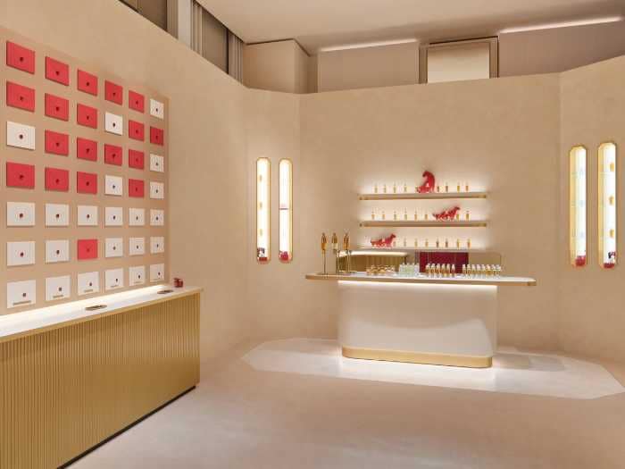 最後の部屋では、レッドボックス型カードにメッセージを添え、20種以上のフレグランスから香りを選ぶ体験も。世界にひとつだけのギフトが完成します。