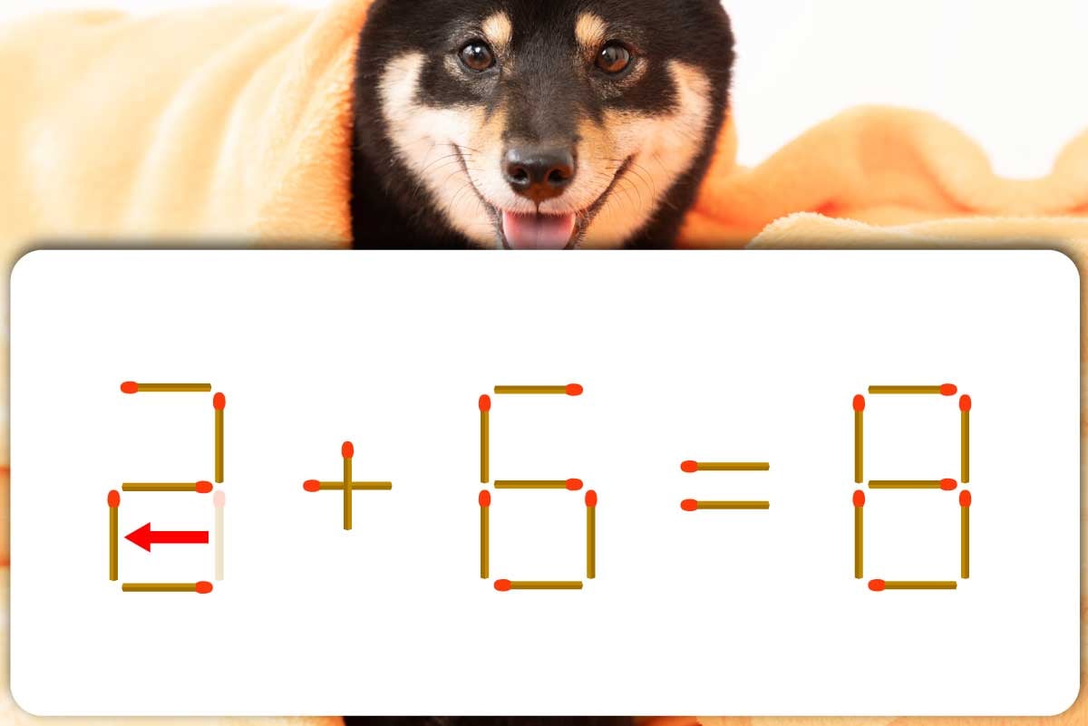 「3」のマッチ棒を1本、移動させて「2」を作り、「2+6=8」にする。※解答は複数ある場合があります。
