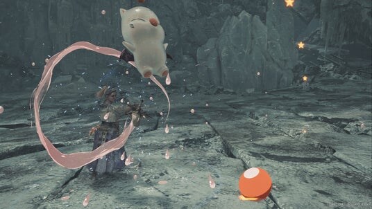 「ピクトマンサーの証」を使用すると「ピクトポンポン」などの特殊アクション「絵画魔法」が発動できるようになります。「絵画魔法」はアイテムスライダーから使用可能です。描いた絵素が組み合わさることで、強力な絵画魔法「モーグリストリーム」が発動できます。