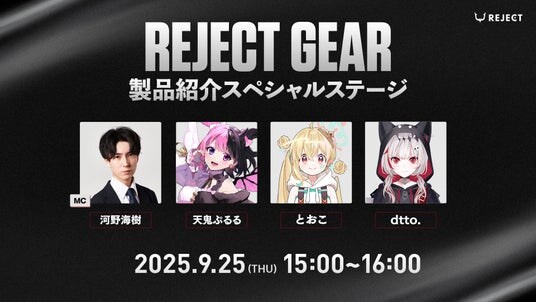 株式会社REJECT(本社:東京都港区、代表取締役:甲山翔也)が運営するプロeスポーツチーム「REJECT」は、2025年9月25日(木)~9月28日(日)に開催される世界最大級のゲーム展示会『TOKYO GAME SHOW 2025』(以下、TGS 2025)に出展することをお知らせいたします。