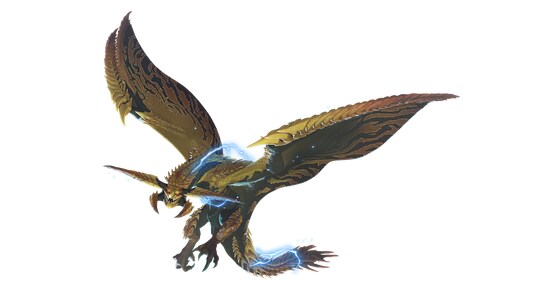 砂原などに棲息する、煌めく金色の飛竜種。その色や、高い放電能力から「煌雷竜」とも呼ばれている。頭部には、雷角と呼ばれる付け根の太い特徴的な形状の角が生えている。刺々しい形状の鱗は発電器官からの電気を効率的に通し、複雑な形状をした甲殻も非常に導電性が高い。フルグライトの刃を纏う翼や尾を含め、発電、蓄電に特化した生態であることがわかる。
