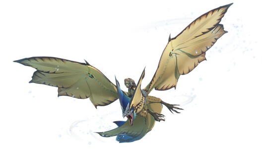 華麗に空を舞う姿が印象的な飛竜種。別名「風漂竜」。翼腕や尻尾に特殊な形状の皮膜を有しており、それを巧みに操ることで気流の不安定な環境においても自在な飛行を可能にしている。頭部や翼腕、尻尾に備えた皮膜は、風を受けての飛行に特化した構造になっている。飛ぶ高度や速度を変える際には各皮膜の角度を細かく調整し、気まぐれに吹く風もうまく掴み、巧みに宙を舞う。