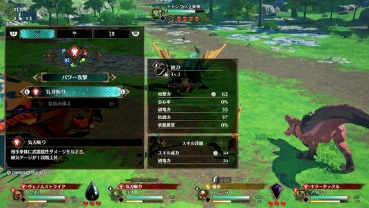 モンスターの部位には耐久値があり、部位耐久値を0にすると「部位破壊」ができる。部位破壊に成功すると、素材をドロップしたり、特定の行動を封じたりと、様々なボーナスが得られる。どの部位を狙って破壊するかも、バトルで有利に立ち回るための重要なポイントだ。