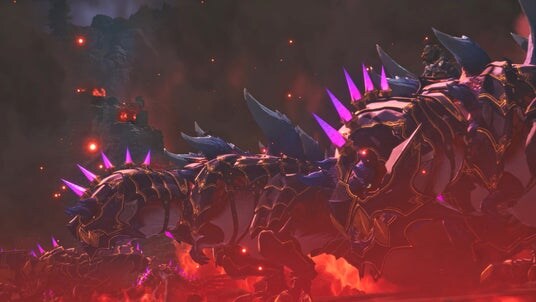蒼く巨大な尻尾を刃のように振るう姿から「斬竜」の異名を持つ獣竜種。発火性の高い鉄分を含んだ尻尾は、攻撃を繰り返すごとに高熱を帯びていき、紅く、そして鋭く研ぎ澄まされていく。尻尾を使った攻撃を繰り返していると、地面などとの摩擦によって表面温度が上昇、赤熱化する。この状態の尻尾は斬れ味が鋭くなり殺傷能力が大きく増すほか、振り抜く際に炎をも巻き起こす。