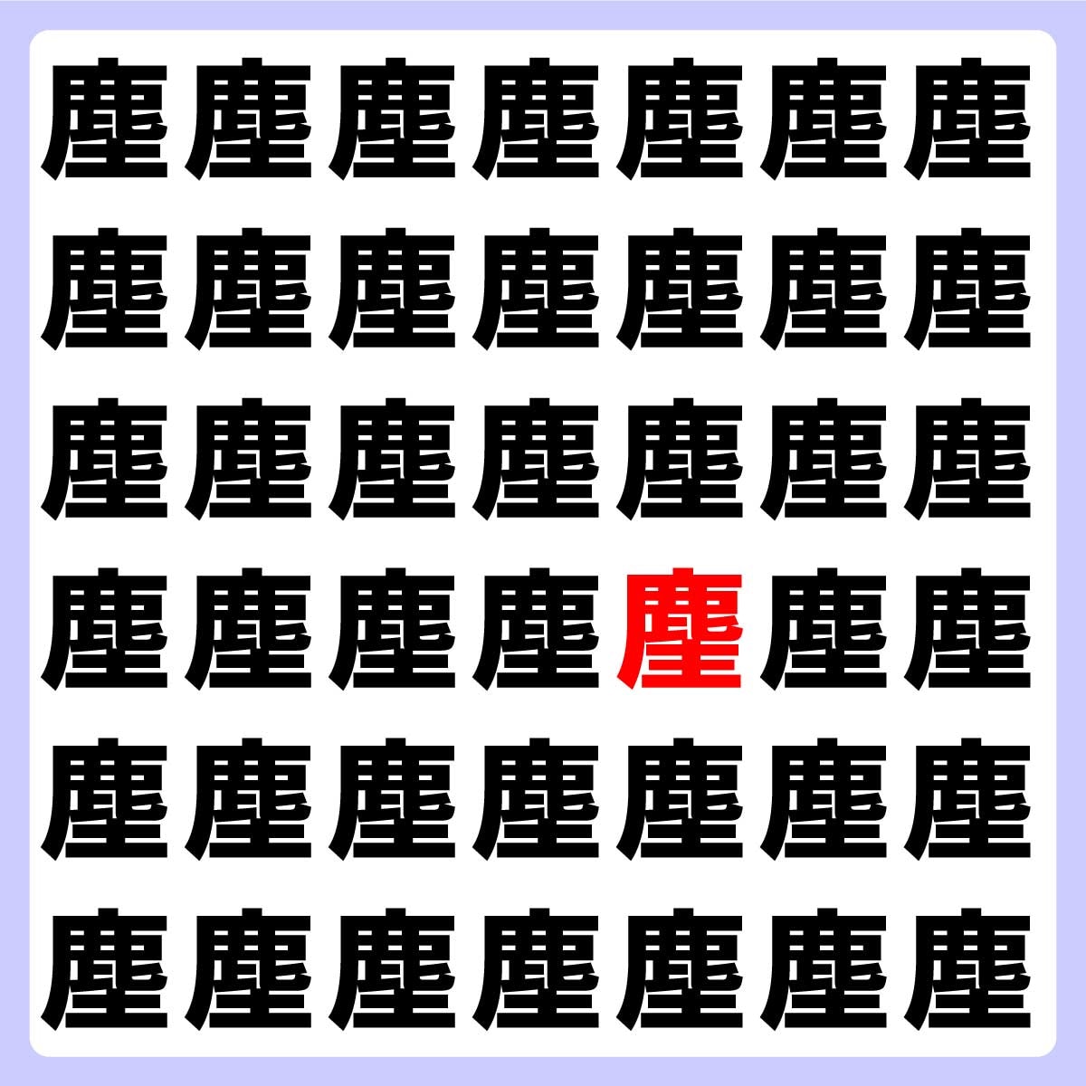 違う漢字は、下から3番目の列、右から3番目の文字でした!