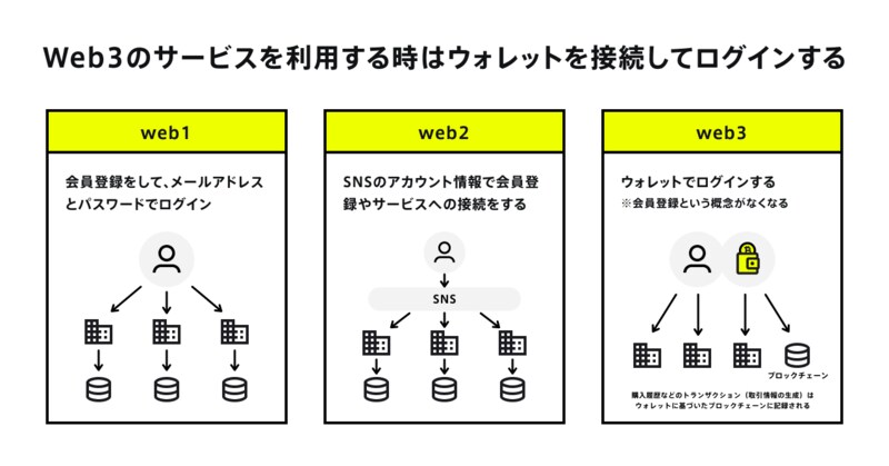 ▲図3:Web1、Web2、Web3のログイン方法の比較