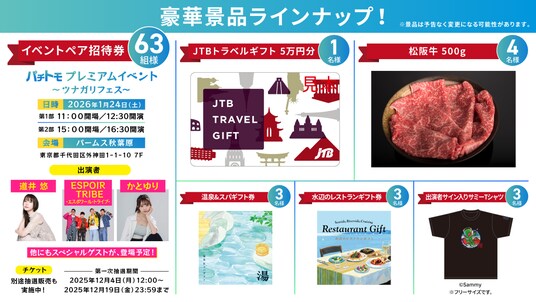 株式会社サミーネットワークスは、パチンコ・パチスロを愛する仲間たちが一堂に会するプレミアムイベントパチトモプレミアムイベント~つながりフェス~」を、2026年1月24日(土)にパームス秋葉原にて開催いたします。