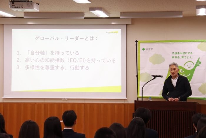 東京都板橋区にある帝京中学校・高等学校にて「グローバルリーダーに求められる力」をテーマに開催された特別授業には、帝京中学校「インターナショナルクラス」の1年生と、帝京高等学校「インターナショナルコース」の1年生・2年生が参加しました。