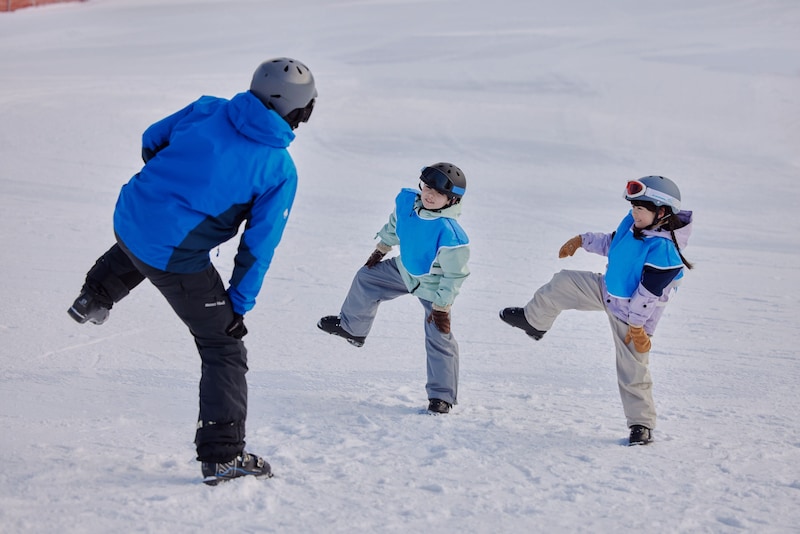 「雪ッズ」では、これらの動作をいきなり斜面で行うのではなく、まずは平地でしっかり習得してから斜面で実践するステップを採用。これにより、自然と上達スピードが早くなる仕組みになっている。