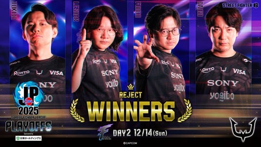 「ストリートファイターリーグ: Pro-JP 2025 プレイオフ Day2」は「REJECT」が勝利、来年1月31日(土)に開催される、「グランドファイナル」への進出権を獲得しました。