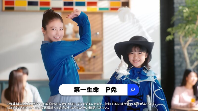 ストーリーは、カフェでの一幕から始まる。スマートフォンを見ながら「がんになっても、保険料の支払いが続くの?」とつぶやく今田の元へ、赤い衣装の「第一でナイト」に扮した永瀬が現れる。驚く今田を前に、永瀬はマントを翻して青い衣装へと変身。「保障が広がった、P免!」と、新商品である「保険料払込免除特約(ワイド型・ベーシック型)」(愛称:P免)をアピールする展開となっている。