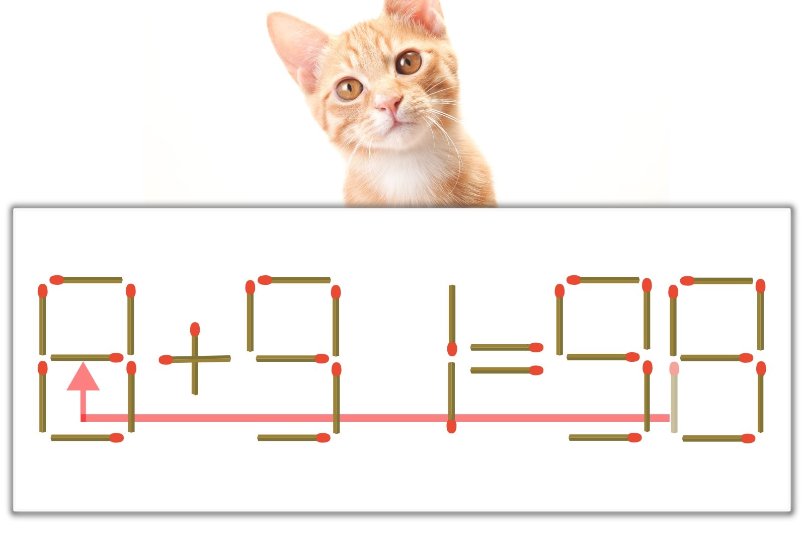 【問題】マッチ棒を1本動かして式を正しくしてください。
