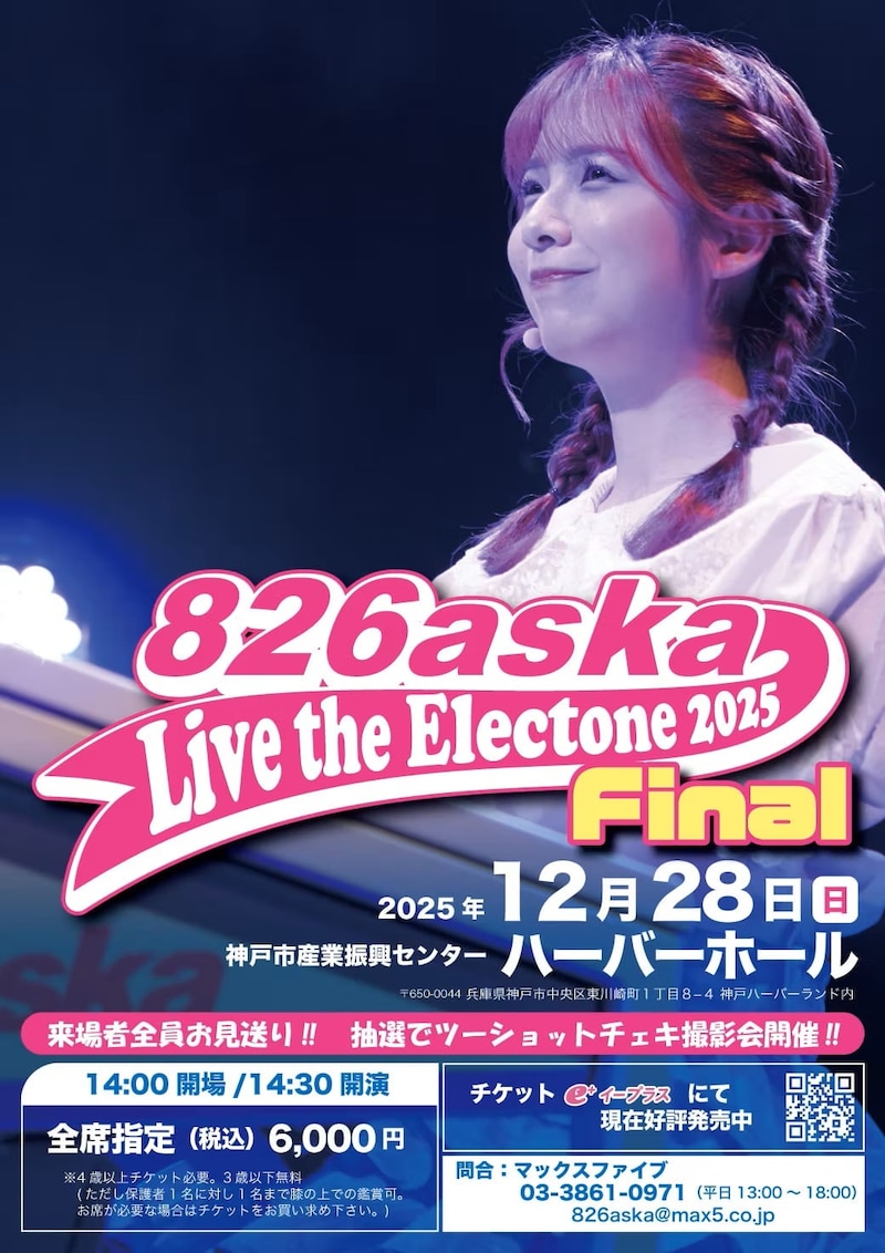 さらに、12月28日(日)には、神戸市産業振興センター ハーバーホールにて、年内ラスト公演となる「Live the Electone 2025 Final」を開催。本公演では、来場者全員を対象とした終演後のお見送りや、抽選で参加できる2ショットチェキ撮影会など、ファンとの距離をより近く感じられる企画も予定されている。