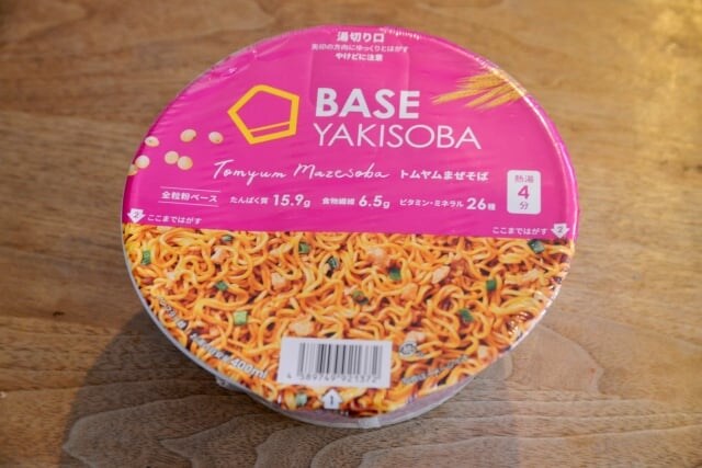 ▲こちらは、シリーズ歴代No.1評価(開発時の官能評価)。本格トムヤムのうまみと酸味が好評の『BASE YAKISOBA トムヤムまぜそば』(421円)で、同年9月に新発売