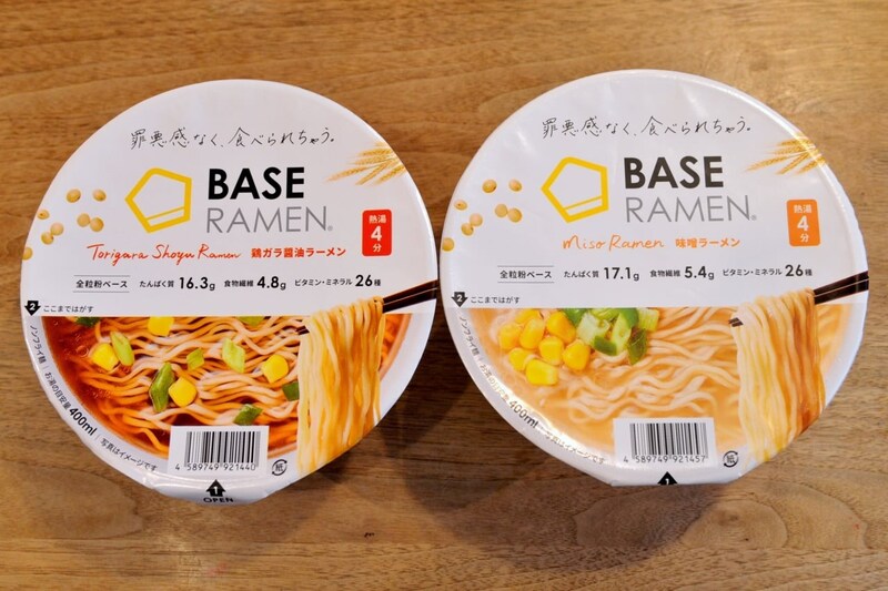 今回の『BASE RAMEN』は『鶏ガラ醤油』と『味噌』の2種類で、価格は各442円。2025年10月22日から、公式オンラインショップほかECサイトと取扱店で発売されています。栄養素はもちろんエネルギーも控えめで、『鶏ガラ醤油』は299kcal、『味噌』は330kcal。一般的なカップ麺と比較しても抑えられた設計となっています。