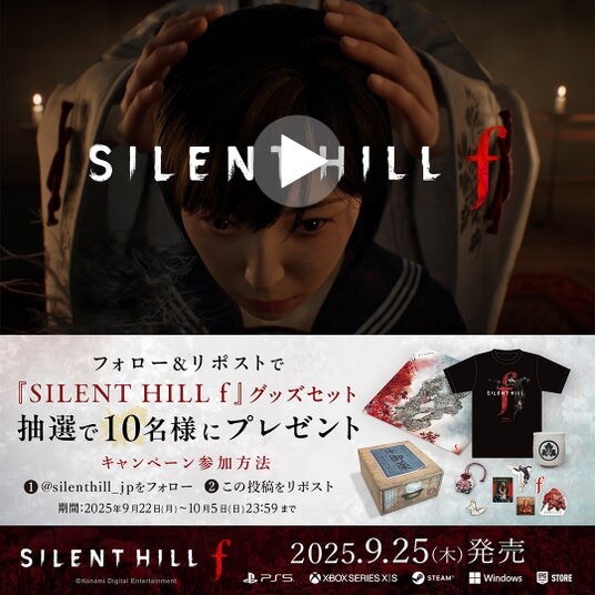 株式会社コナミデジタルエンタテインメントは、『SILENT HILL f』(PlayStation(R)5、Xbox Series X|S、Steam(R)、Epic Games、Microsoft Store)を本日発売したことをお知らせします。