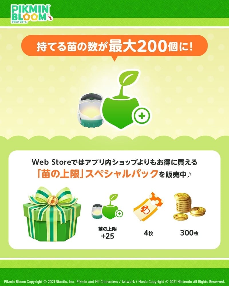 2025年12月15日(月)、位置情報ゲーム『ピクミン ブルーム』で各種スポットやイベントなどを通じて入手できるピクミンの元となる“苗”の所持数がついに解放。