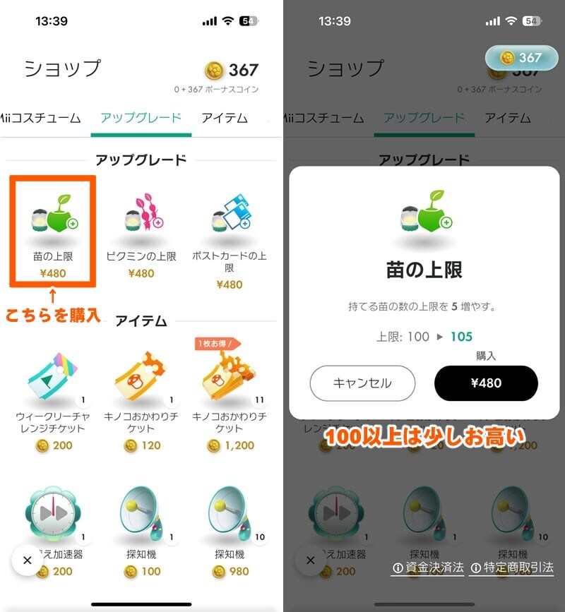 本日(12/15)より従来最大100個だった苗の所持数が“苗の上限”を購入することで200個まで増やせるようになった。