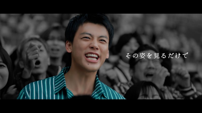 新CMのテーマは、競馬場の客席で心を揺さぶられ、「アガる!」4人の興奮と感動だ。映像では、祈るようにレースを見守る長澤、ゴールの瞬間に歓びを噛みしめる見上、体に力が入り震える佐々木、そして雄叫びを上げて熱狂する竹内と、四者四様のリアクションが映し出される。