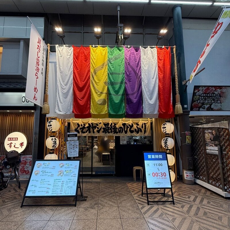 ここ数年、国内にとどまらず海外にも進出している「人類みな麺類」の系列店。大阪に運営会社があることで知られているが、その中で貝だし醤油ラーメンを提供しているのが「くそオヤジ最後のひとふり」。