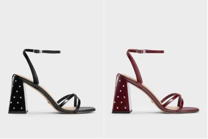 さらに¥13,900(税込)のEmmalineパテントレザークリスタルヒールアンクルストラップサンダルは、特別な夜にふさわしい存在感を放ちます。