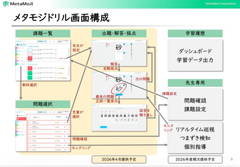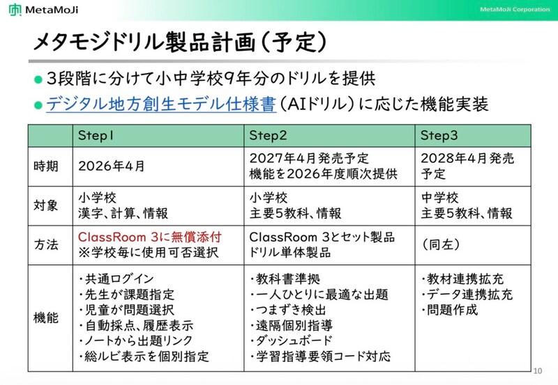 まず2026年4月からは小学校の漢字、計算、情報についてを提供。今後、3段階に分けて小中学校9年分のドリルを提供する予定とのこと。