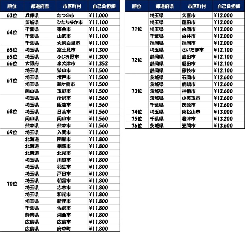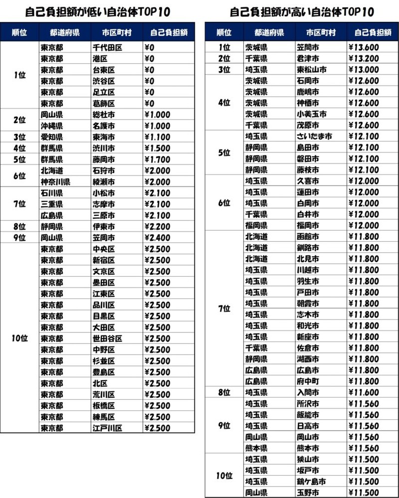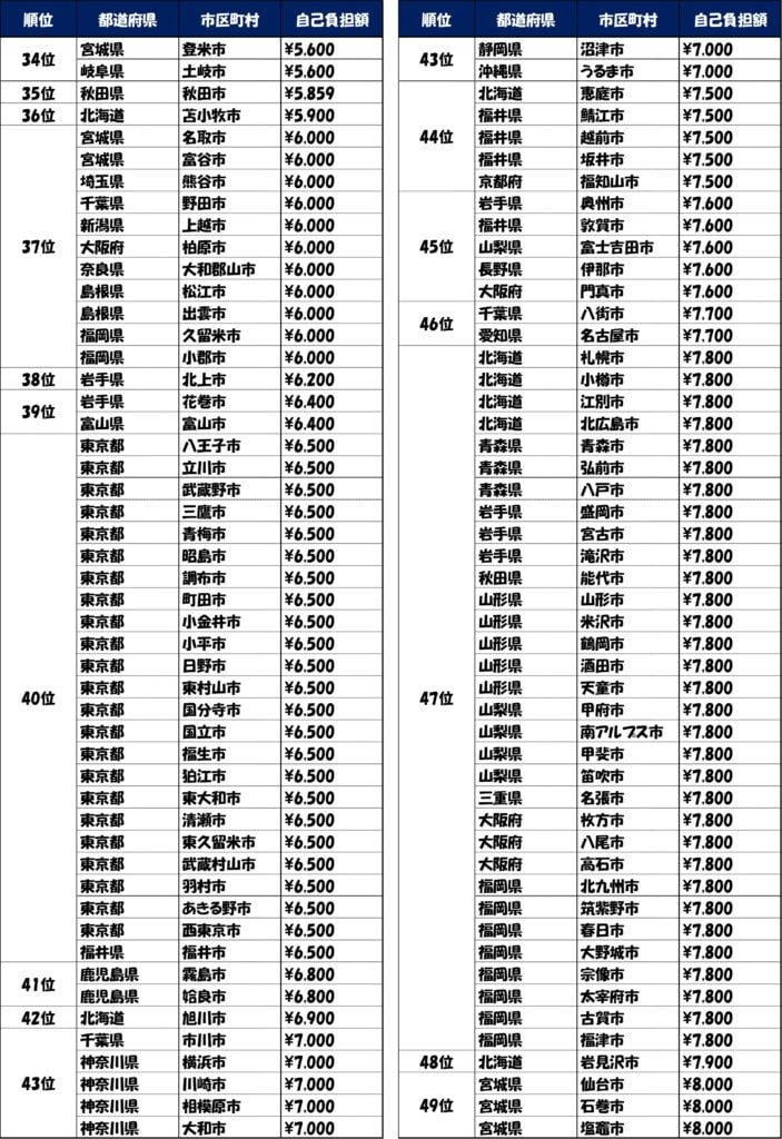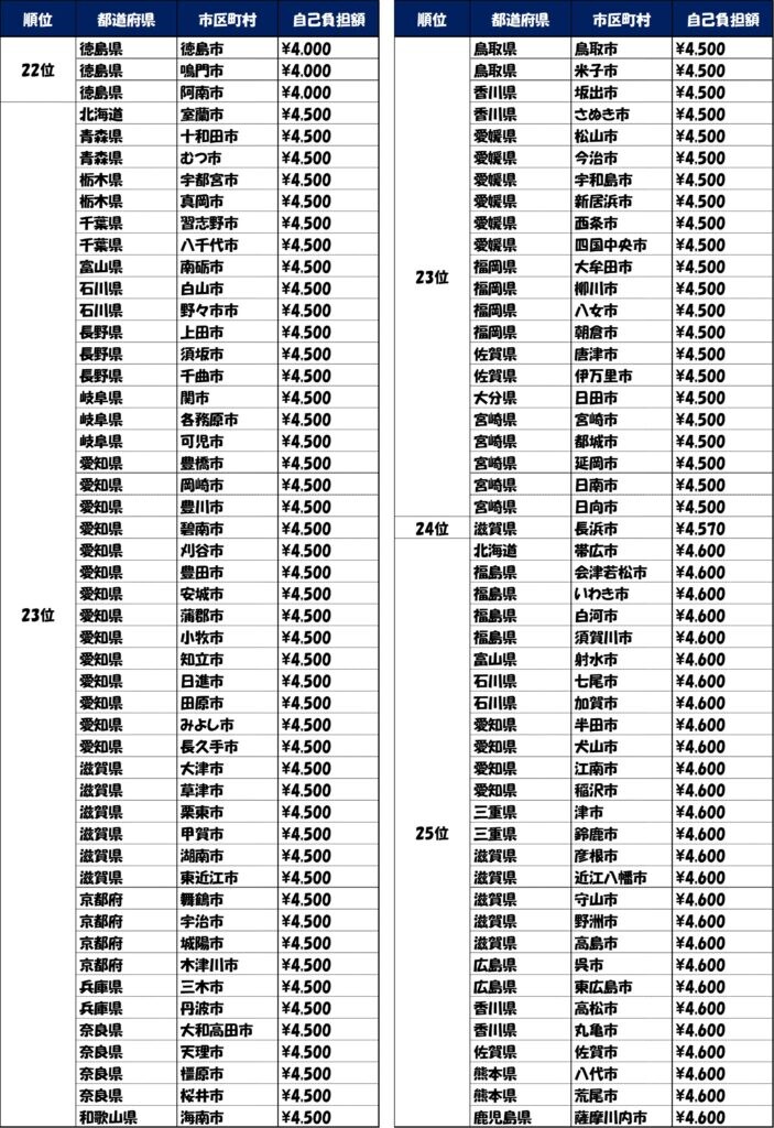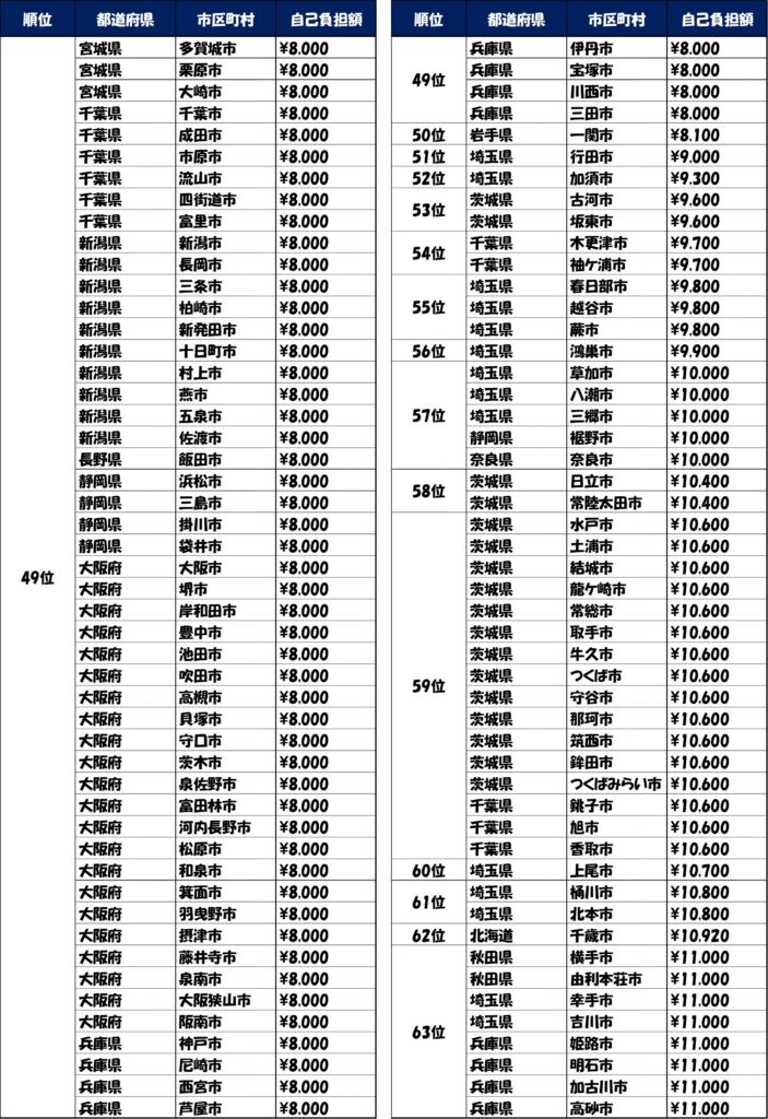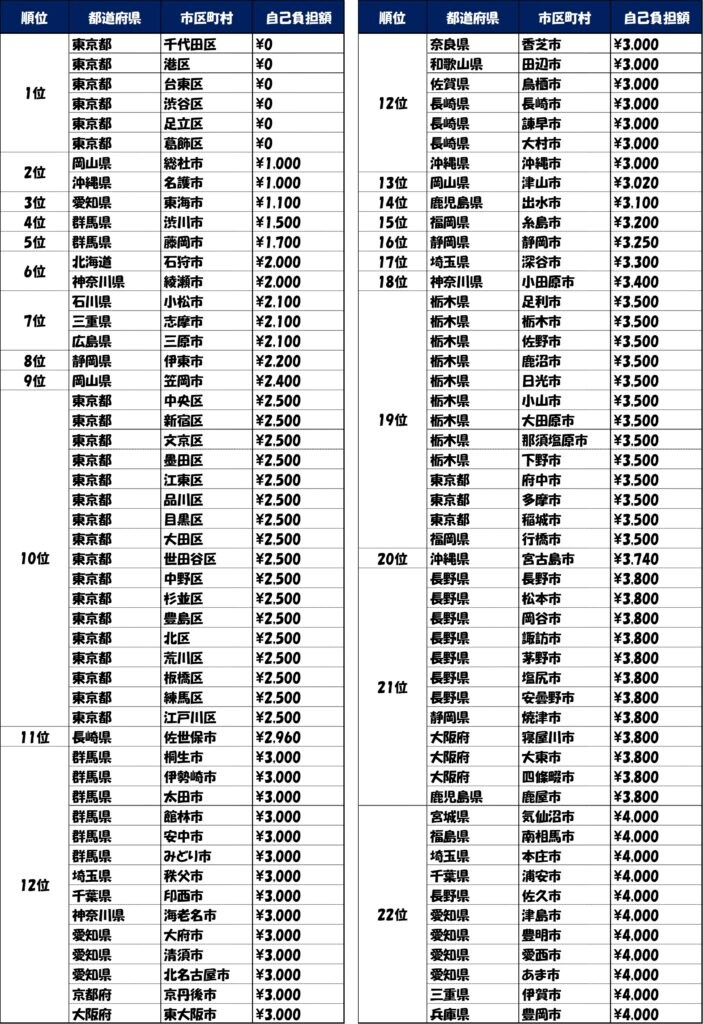 自治体別自己負担額ランキング