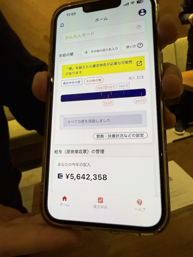 また、収入を登録することによって、自身の年収の壁の状況も視覚的に確認することができる。わかりやすい。