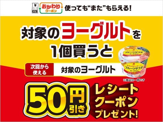 12月16日から22日までの期間、対象のヨーグルトを1個購入すると、次回使える50円引きクーポンがもらえます。