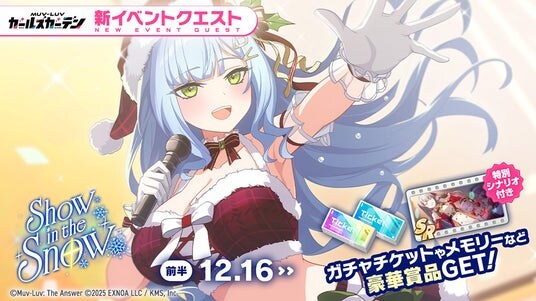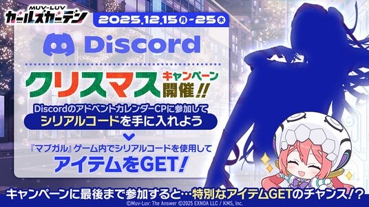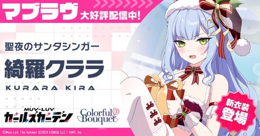 合同会社EXNOA(本社:東京都港区、CEO:東條 寛、URL:https://games.dmm.com/)と株式会社KMS(本社:東京都品川区、代表:梶原 健太郎、URL:http://kms3.com/)が贈るマブラヴ最新作『マブラヴ ガールズガーデン』(以下、マブガル)が12月15日(月)より、公式Discordにてクリスマスアドベントカレンダーキャンペーンを開催中です。また、ゲーム内では新イベント【Show in the Snow】後半を開催し、新衣装の「綺羅クララ」【聖夜のサンタシンガー】が登場しました。