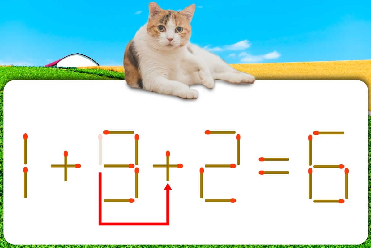 「9」のマッチ棒を1本、「-」に移動させて「+」を作り「1+3+2=6」にする。※解答は複数ある場合があります。