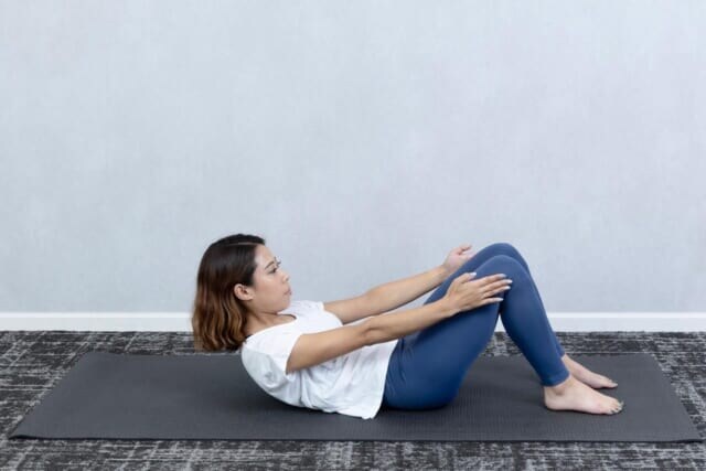 そこで役立つのが、上体を丸めて起こす「カールアップ」。腹部の深い部分にじんわり刺激が入り、使われにくい体幹が自然と目覚めます。下腹だけでなくウエストまわりの輪郭も整いやすくなり、“細見え”への土台づくりにつながります。