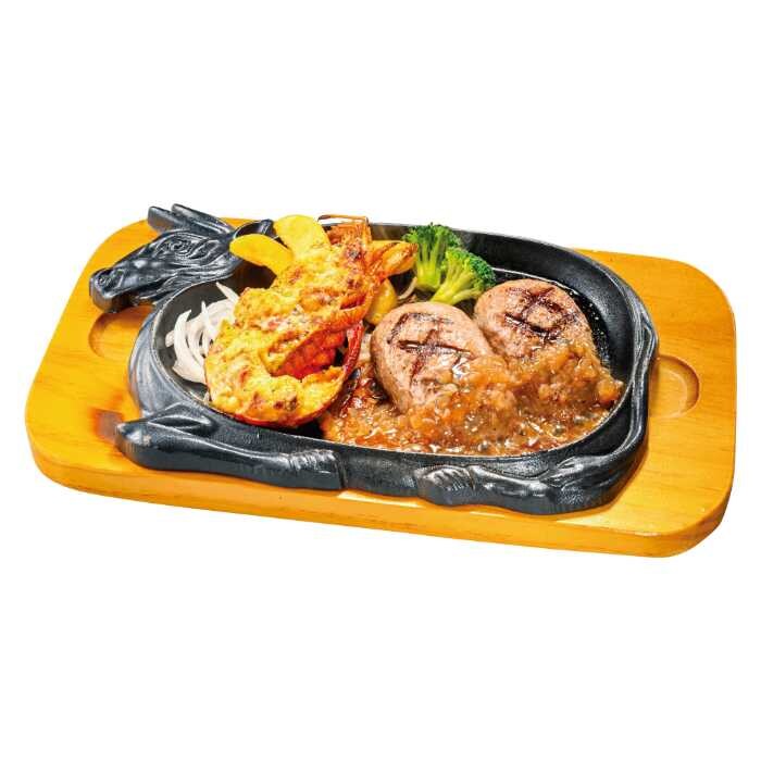 看板商品の大俵ハンバーグと組み合わせた「ロブスター&大俵ハンバーグ」は、150gが2,190円(税込2,409円)、200gが2,290円(税込2,519円)、250gが2,490円(税込2,739円)。