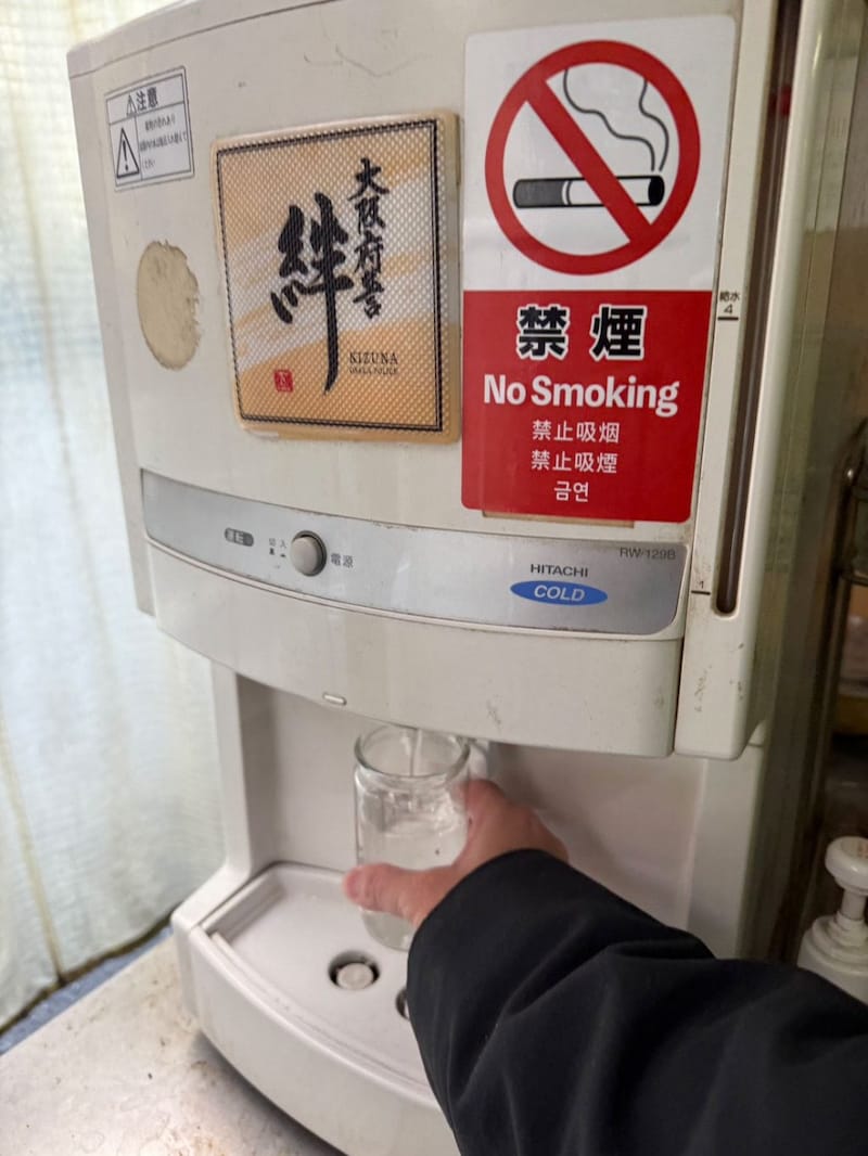 お水を入れるコップが、カップ酒のグラスなのがたまらん。