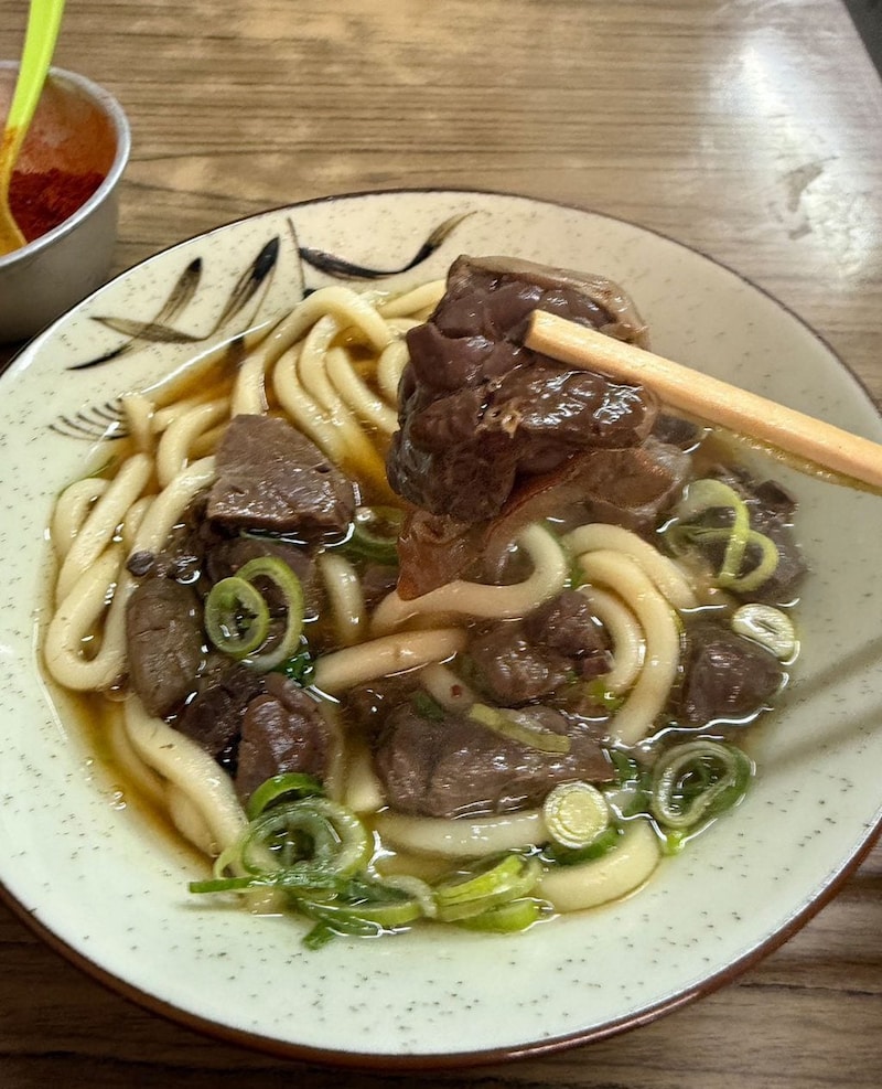 やわらかすぎず、ちょうどいい硬さのうどん。ホルモンは、フワ(肺)がメインに、たまにシロ(腸)があるかな?といった感じ。