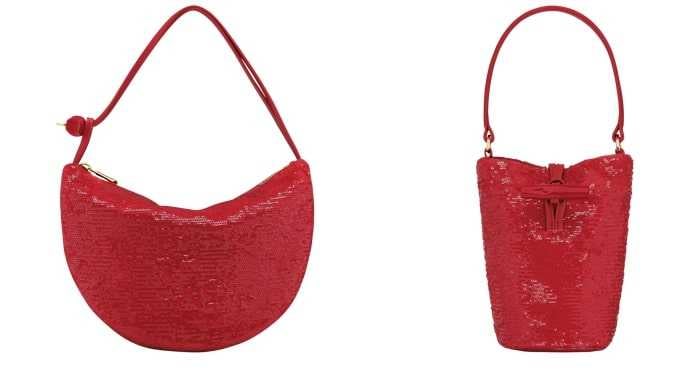 「Le Roseau Sparkling」はH17.5×W25.5cm(クラッチ)44,000円、H18×W11×D11cm(トップハンドルバッグ)50,600円、レッドカラーで展開。