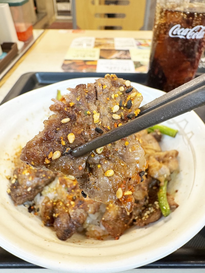 松屋の「カルビと特選ブリスケット肉の合い盛り丼」、とても良いから、お食べなさって。