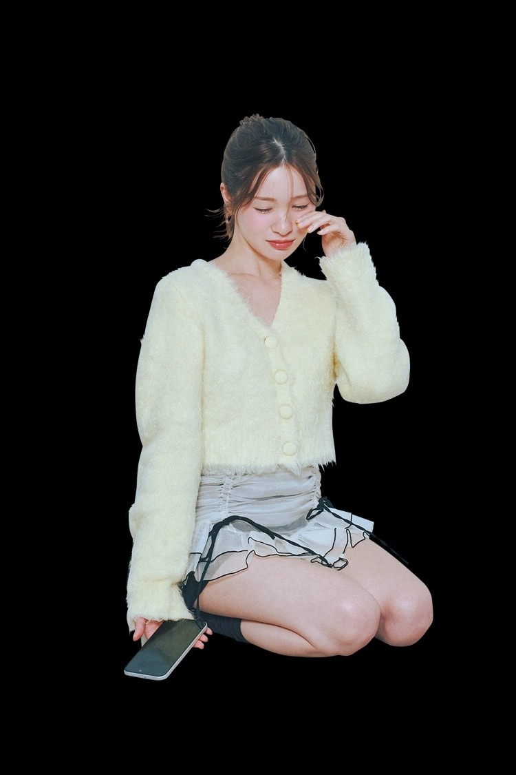 ニットカーでとショートパンツをあわせれば、王道あざとコーデの完成。ふわもこアイテムと肌見せの二刀流で彼の視線をゲットして♡