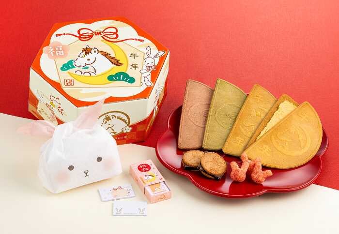 『午年福BOX』は、毎年好評の干支半月を中心に、新年の幸福を願う想いを込めた期間限定の詰合せ。